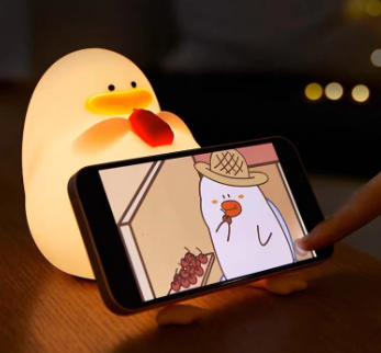 幸福丫硅胶灯人工智能语音声控三挡调光灯USB充电七彩定时小夜灯